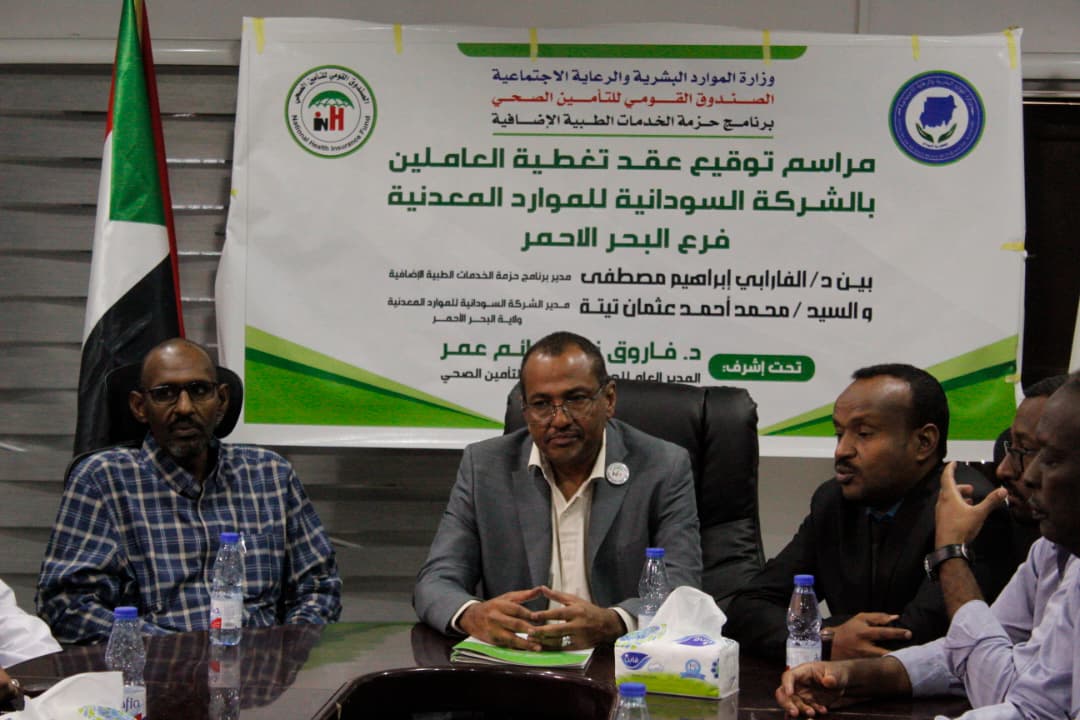 وقع الصندوق القومي للتأمين الصحي والشركة السودانية للموارد المعدنية عقدًا لإدخال العاملين بالشركة فرع البحر الأحمر ضمن الحزمة الإضافية للخدمات الطبية.