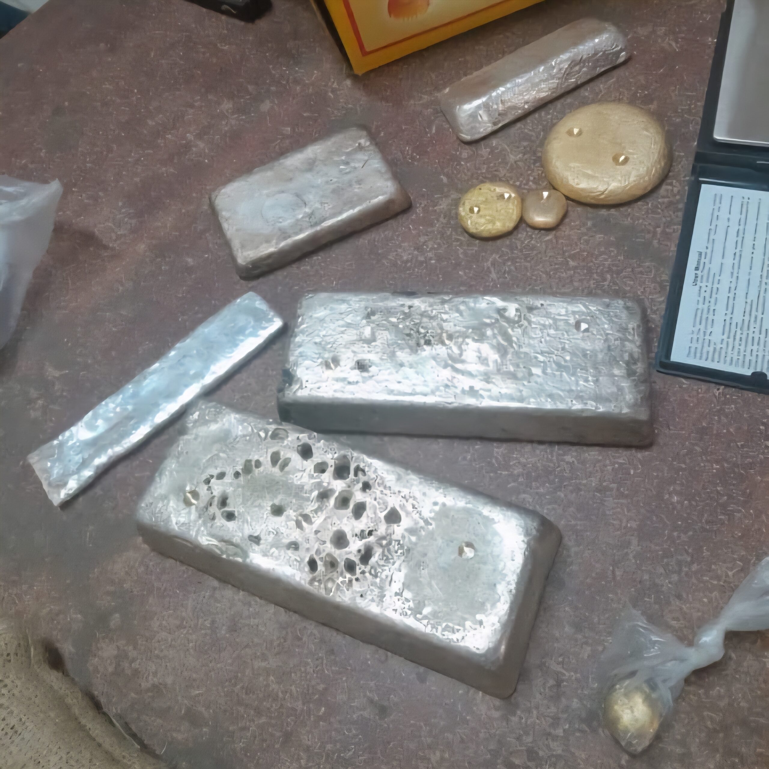 تمكن فريق الميدان بالإدارة العامة لمباحث التجارة والتموين وحماية المستهلك فرعية نهر النيل بقيادة ضابط شرطة من ضبط المتهم ( م، ع، ع) بحي المطار وبحوزته عدد (6) سبائك من الذهب زنة (590) جرام وعدد (10) سبائك من الفضة زنة (5769) جرام دون أوراق رسمية تثبت ملكيته له