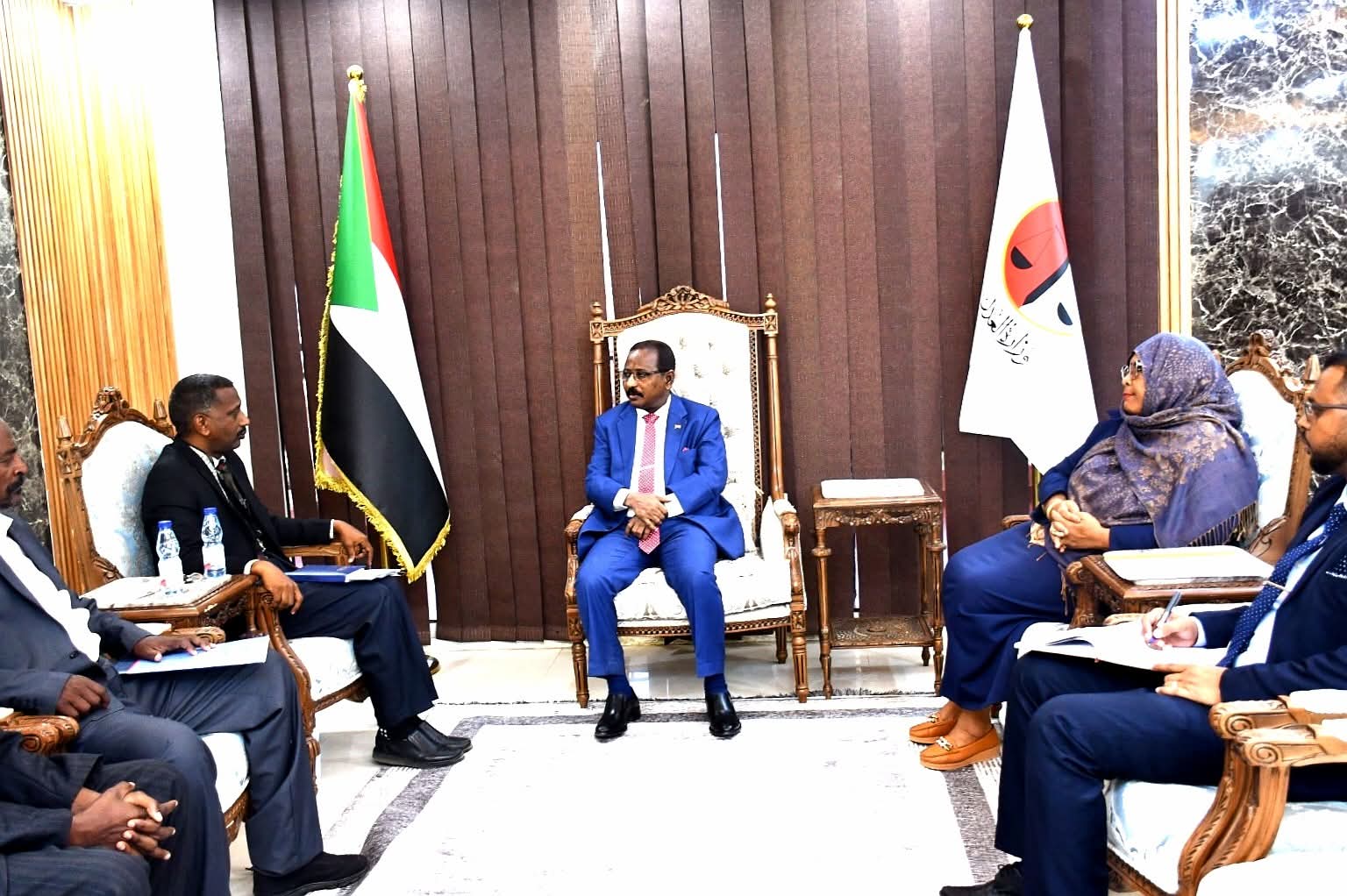التقي السيد وزير العدل د. عبدالله درف بمكتبه صباح اليوم بالمدير العام لوحدة تنفيذ السدود الأستاذ بدر الدين محمود عبدالله يرافقه منسق المنحة السعودية والمستشار القانوني لوحدة تنفيذ السدود بحضور رئيس إدارة العقود بوزارة العدل مولانا إنتصار صديق.
