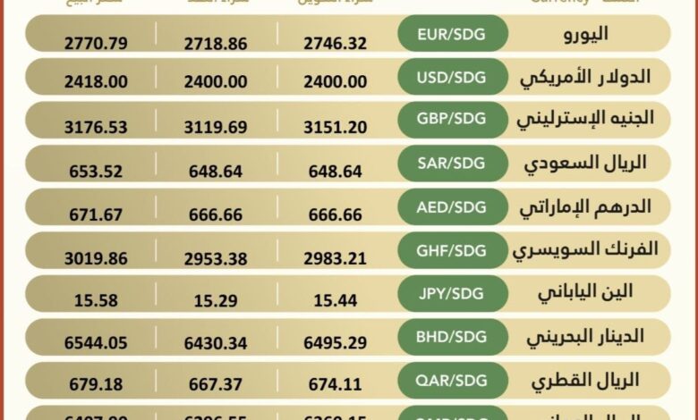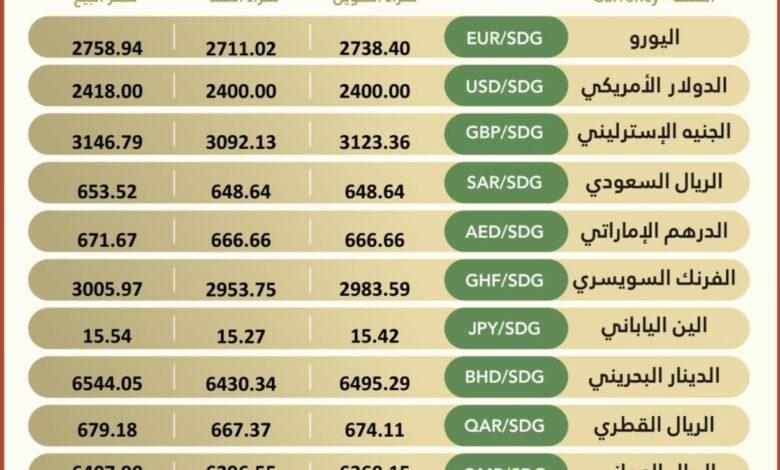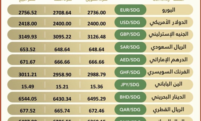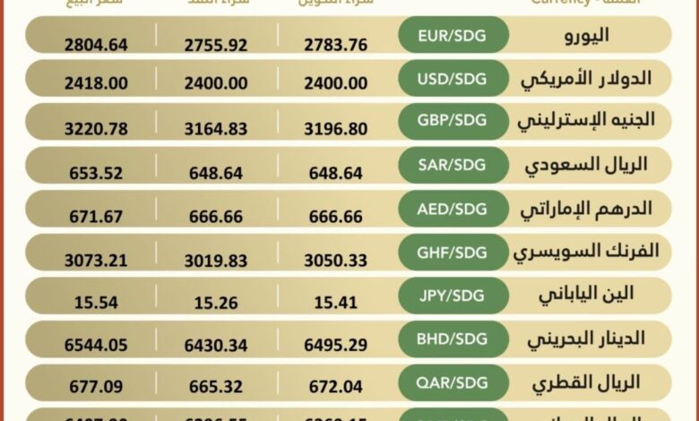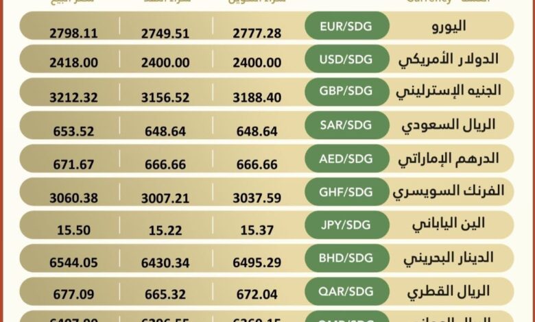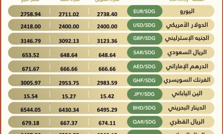 أعلن بنك الخرطوم اليوم أسعار صرف العملات الأجنبية مقابل الجنيه السوداني، حيث شهدت بعض العملات تغيّرات طفيفة مقارنة بالأيام الماضية.…